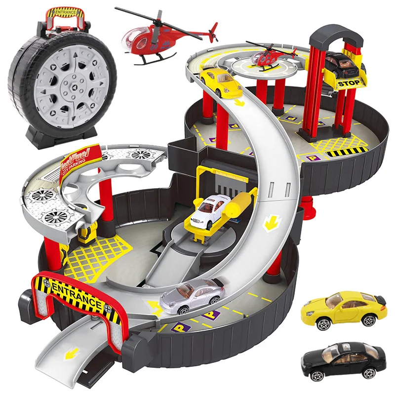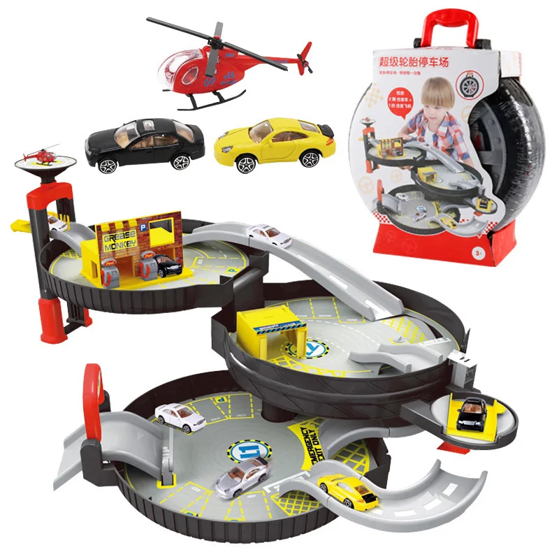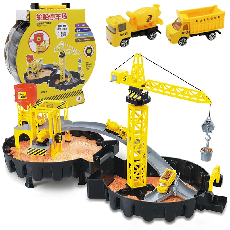 Children Tire Assembled Tunnel Engineering Parking Set Toys Model Boy Alloy Car Airplane Decoration